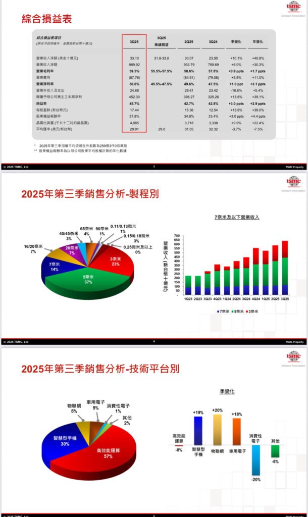 🔻台積電Q3毛利率逼近60%,AI+記憶體雙引擎啟動