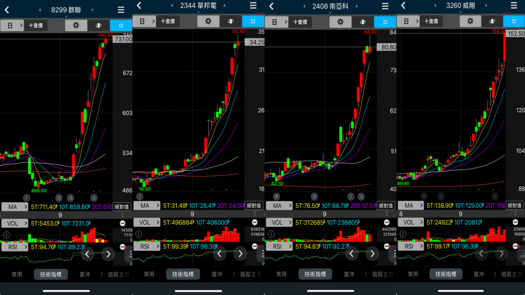 ✍🏻今天台股再創歷史新高,櫃買指數也再創波段高點,記憶體、被動元件、CPO族群點火,華邦電(2344)、南亞科(2480)、群聯(8299)、威剛(3260)也再創波段高,後面有訂單的華星光(4979)今天也突破盤整區,資金輪動效應持續擴散,之前漲多拉回的PCB族群,最近也有資金重新點火,金居(8358)重回10日均線,這裡要觀察9/12號的大量賣壓能否換手,接下來2奈米、連接器、檢測股也可以同步留意觀察,像是一路跟大家分享的京元電子(2449),今天再創歷史新高,持續觀察接下來的營收表現!