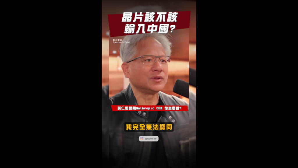 Anthropic CEO Dario Amodei 認為,將高階晶片出口給中國是一個巨大的錯誤,他諷刺這就像是「把核武賣給北韓,還沾沾自喜說飛彈外殼是我們做的」。 然而,面對外界將 AI 發展與「濃縮鈾」或武器做類比的觀點,Nvidia 執行長黃仁勳直言反駁。他指出這種比喻在邏輯上根本不通,因為運算能力的市場運作模式與此完全不同,基於錯誤的前提去讓出市場毫無意義。 兩位頂尖 AI 領航者的觀點交鋒,你認為誰的產業邏輯更貼近現實?在這場地緣政治與科技的角力下,台股 AI 供應鏈又該如何解讀這個變數?